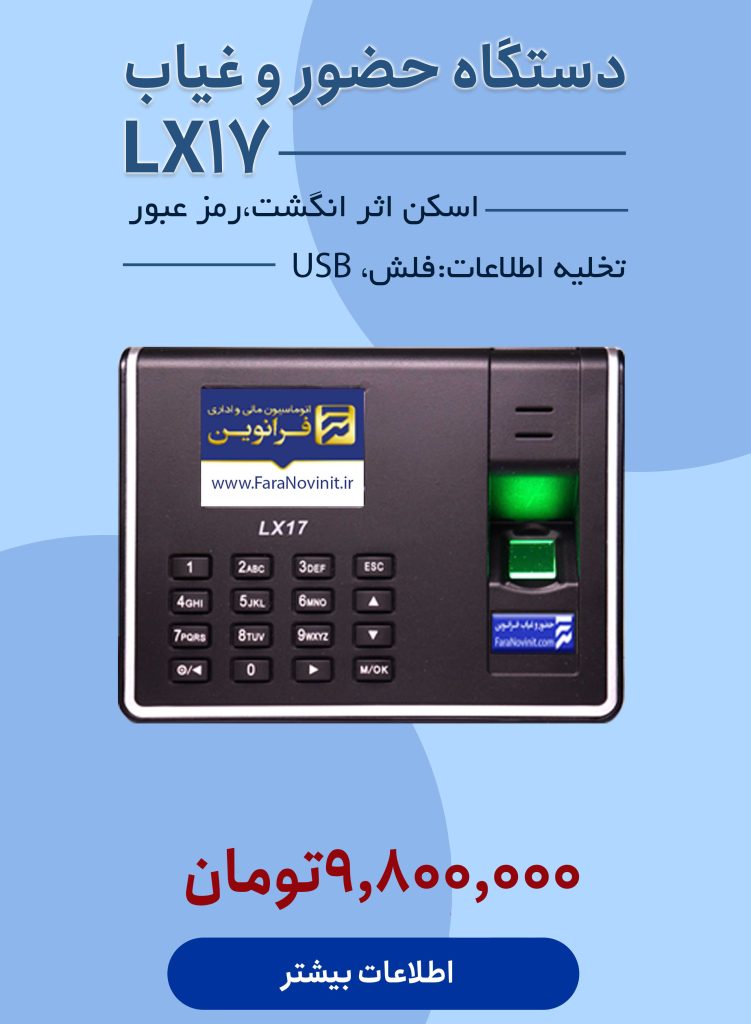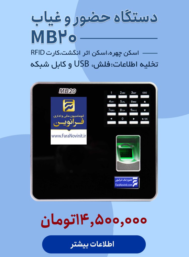 جهت مشاوره و خرید دستگاه های حضور و غیاب ،نرم افزار های حسابداری و حضور و غیاب و سایر محصولات با ما در تماس باشید : 05191094110