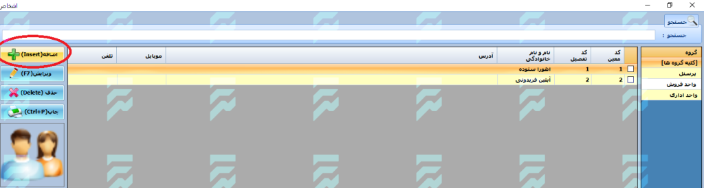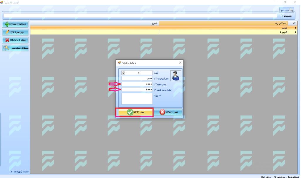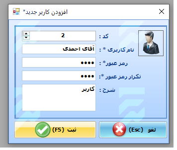 برای تعریف کاربران نرمافزار، مراحل زیر را انجام دهید:
