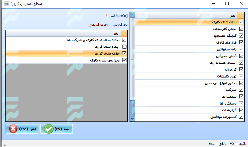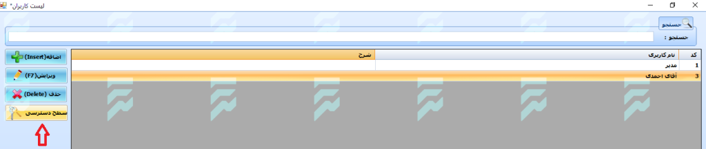 برای تعیین سطح دسترسی هر یک از کاربران، مراحل زیر را دنبال کنید: