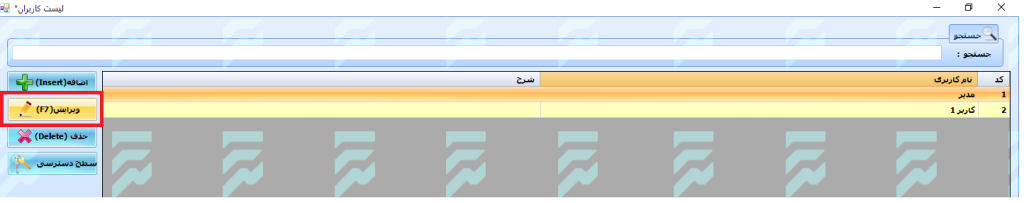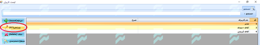- از لیست کاربران، روی سطر مربوط به کاربر موردنظر کلیک کرده و آن را انتخاب نمایید.