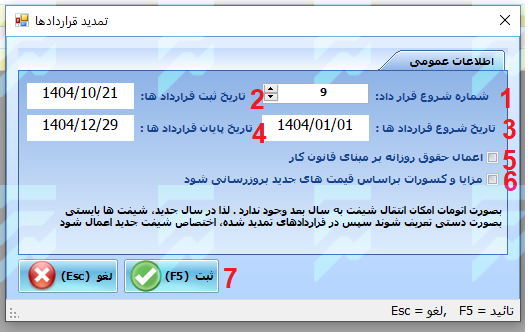 تاریخ شروع قرارداد جدید را نمایش میدهد و لازم است مقدار صحیح برای آن ثبت شود.