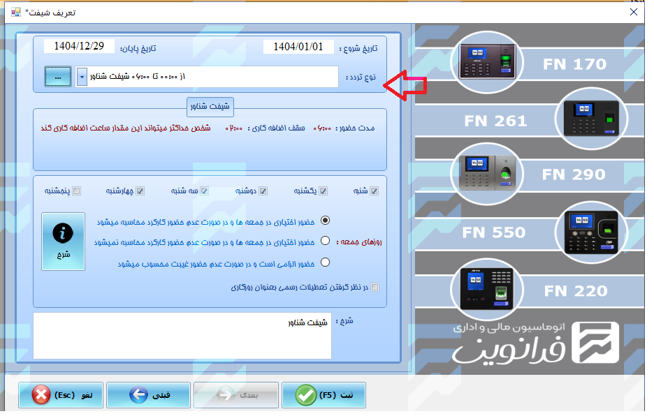 در این بخش، نحوه دریافت اطلاعات تردد دستگاه حضور و غیاب از طریق شبکه (وایفای یا کابل شبکه) و انتقال آنلاین اطلاعات به نرمافزار فرانوین توضیح داده میشود.