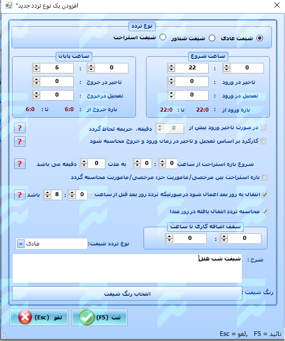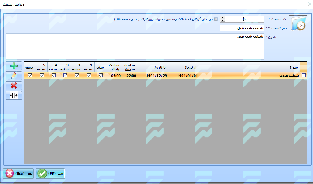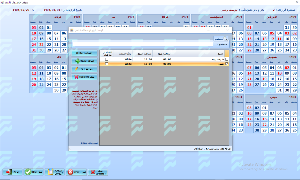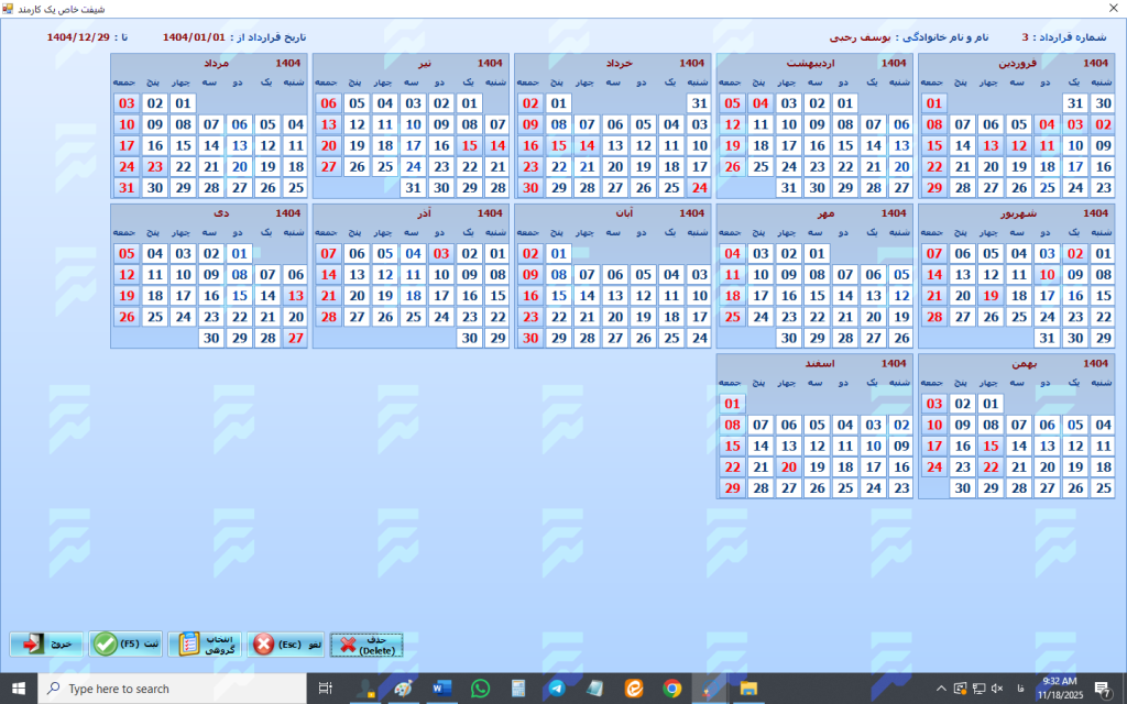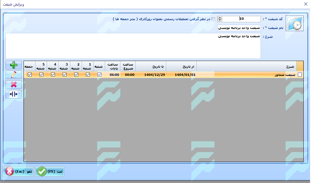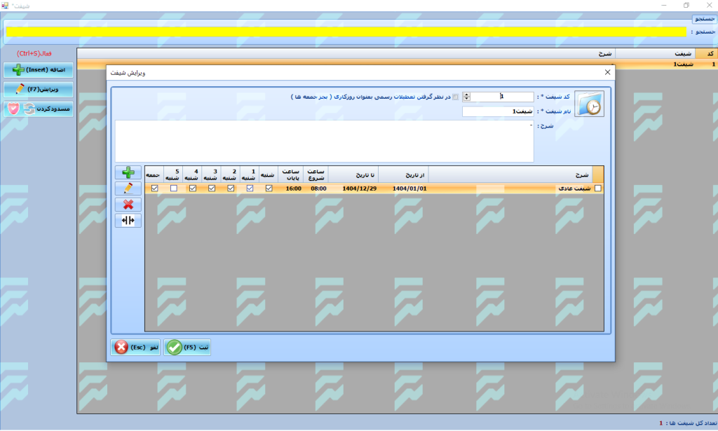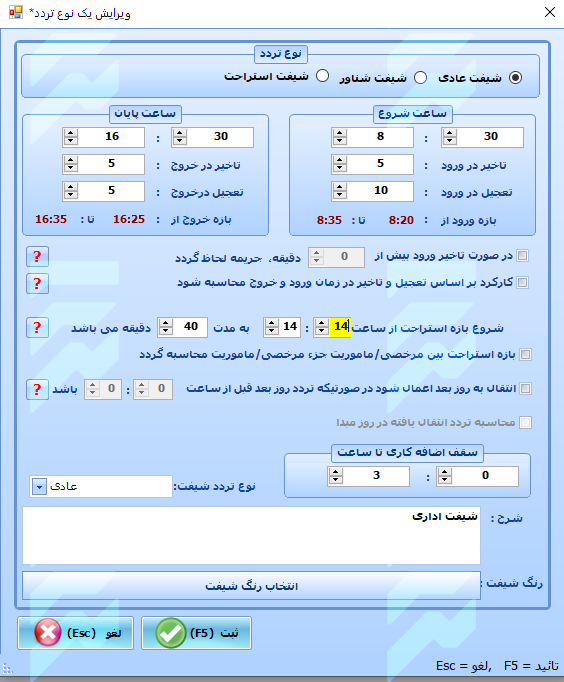 مقادیر اضافهکار، کسرکار، شبکاری، جمعهکاری، مرخصی، مأموریت و تعطیلکاری بهصورت خودکار محاسبه میشوند، اما امکان ویرایش دستی آنها نیز وجود دارد.