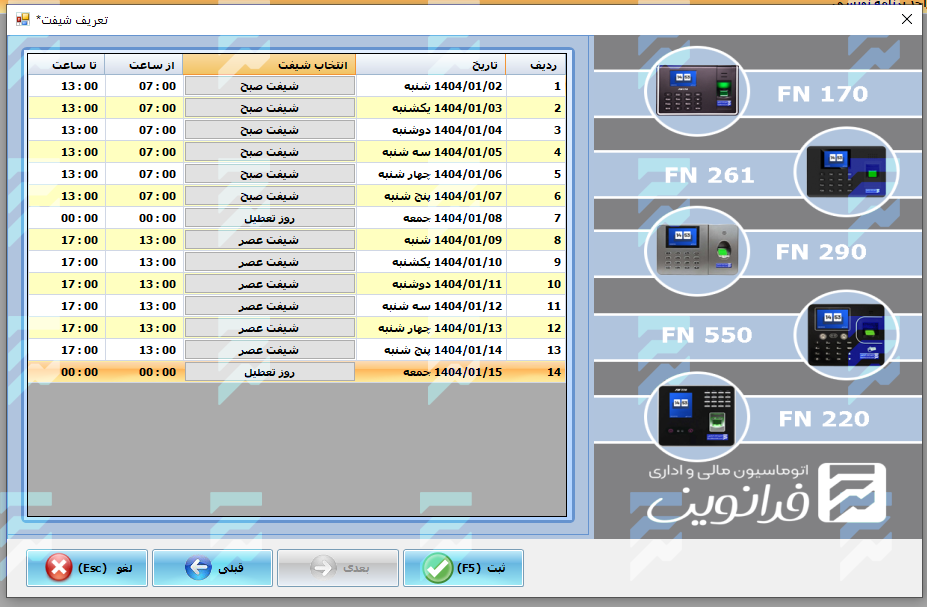 در این بخش، تنظیمات مربوط به دریافت اطلاعات تردد از دستگاه حضور و غیاب در نرمافزار فرانوین شرح داده میشود. شما با نحوه دریافت اطلاعات تردد بهصورت آفلاین (از طریق USB) و آنلاین (از طریق شبکه یا وایفای) آشنا خواهید شد.