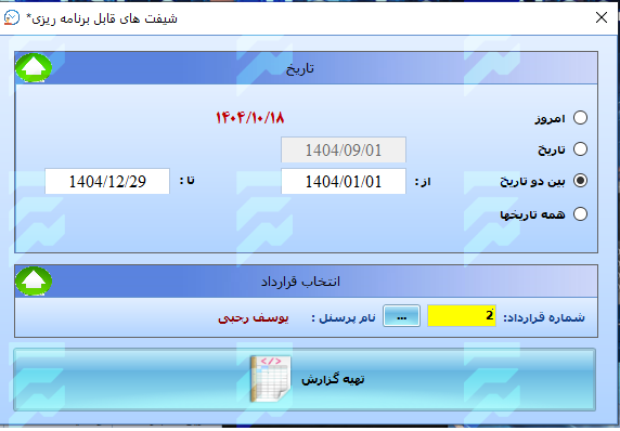پس از تنظیم فیلترهای موردنظر، از انتهای همین پنجره روی دکمه «تهیه گزارش» کلیک کنید تا وارد پنجره قراردادها شوید.