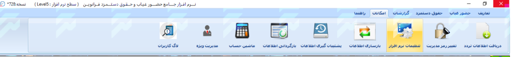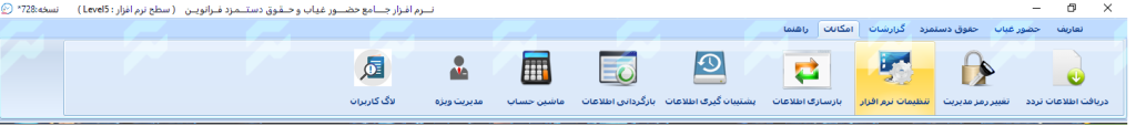 از سربرگ «امکانات»، روی آیکون «تنظیم نرمافزار» کلیک نمایید.