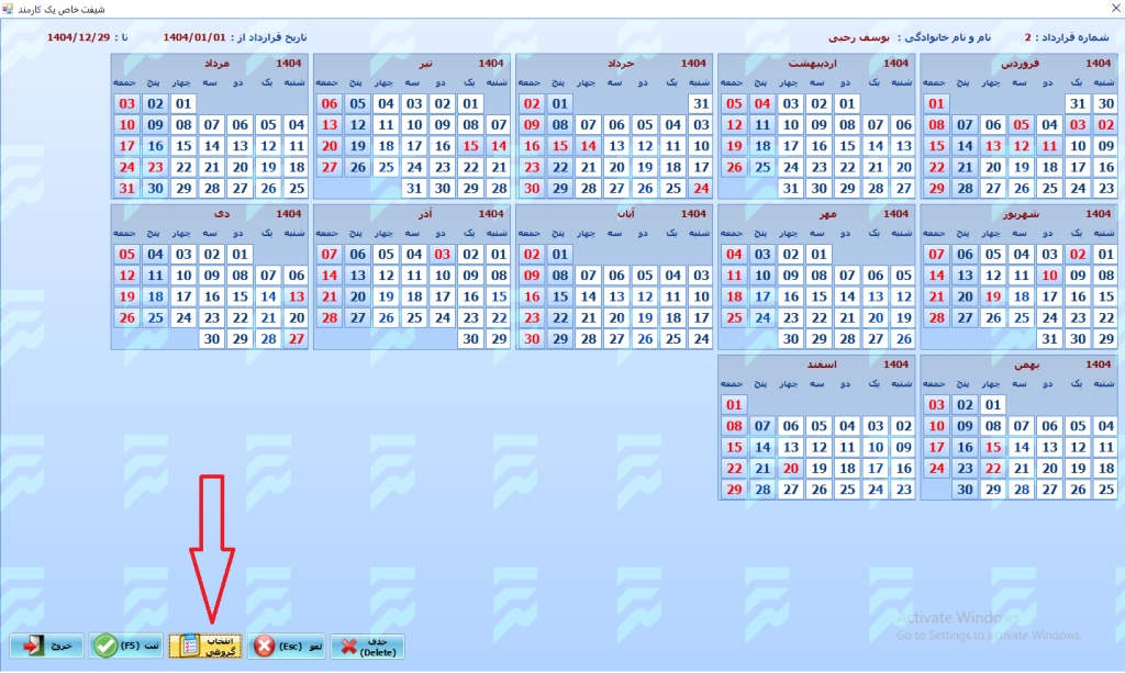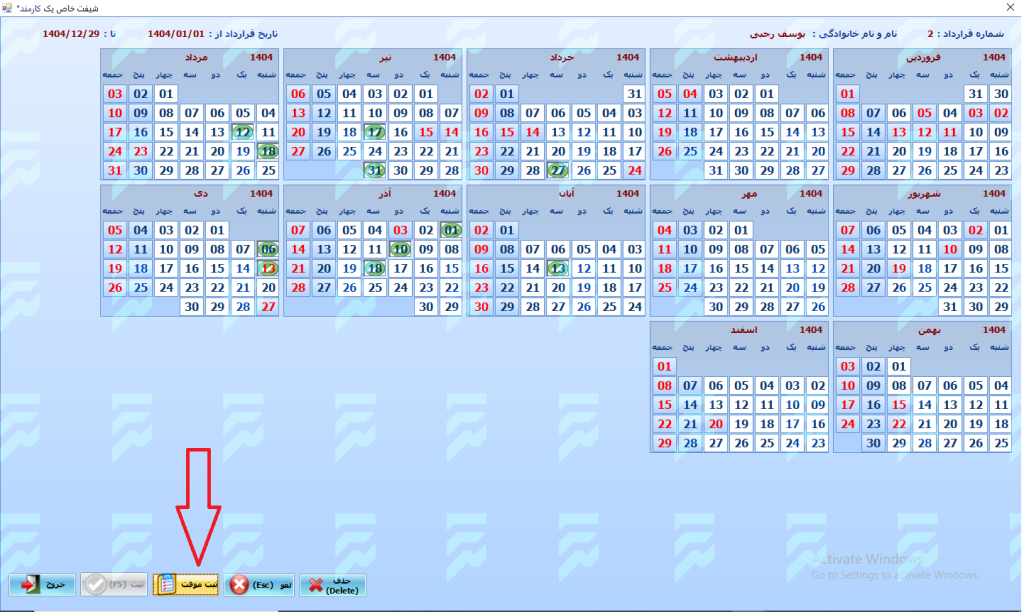 این دکمه برای تمدید قرارداد یک شخص استفاده میشود.