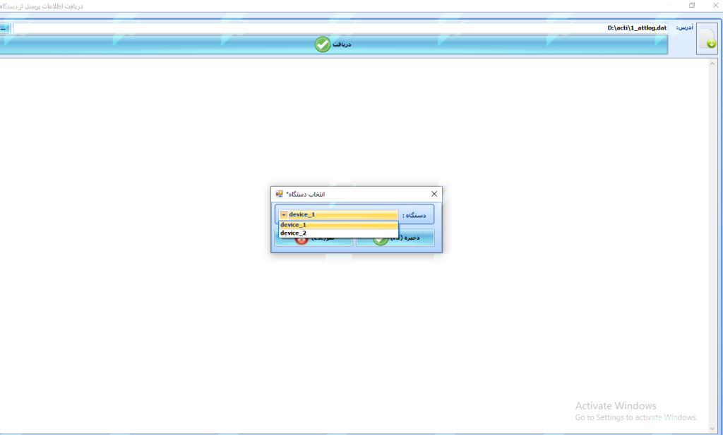 • اگر چند دستگاه تعریف شده است، دستگاه موردنظر را از لیست کشویی انتخاب کرده و سپس روی دکمه «ذخیره» کلیک نمایید.