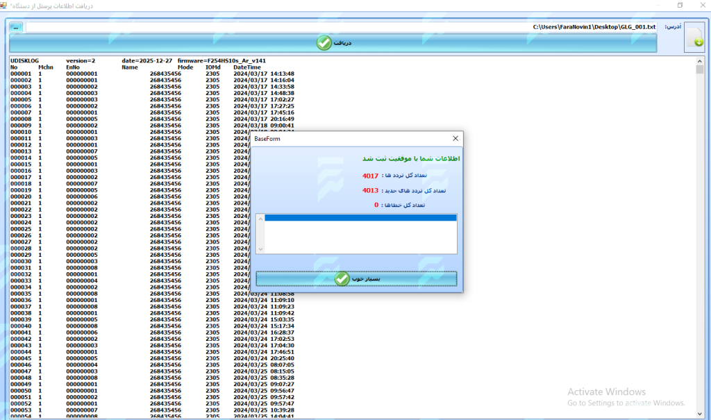 مرحله اول : دریافت اطلاعات تردد در نرم افزار