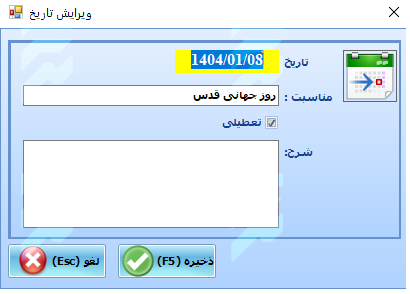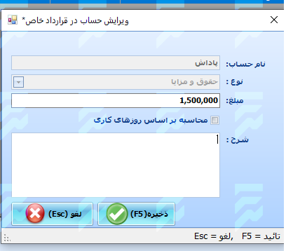 مبلغ را وارد کرده و در صورت نیاز گزینه «محاسبه بر اساس روزهای کاری» را فعال نمایید، سپس ذخیره کنید
