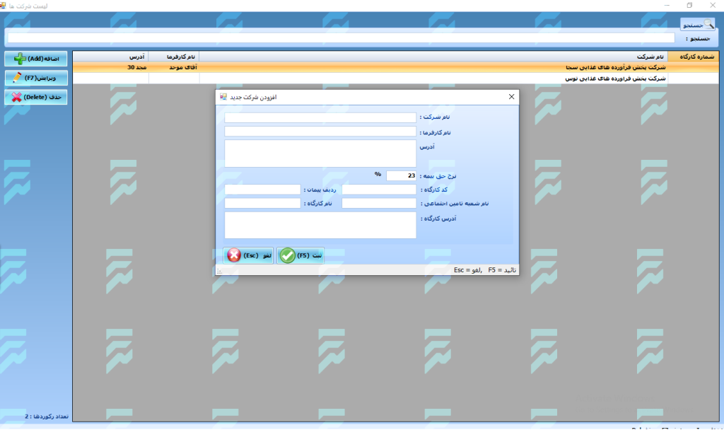 در ادامه، میتوانید چندین شرکت را به همین شیوه در نرمافزار تعریف نمایید.
