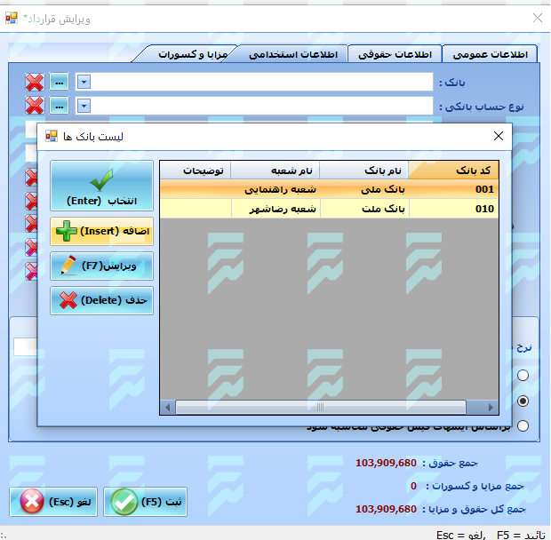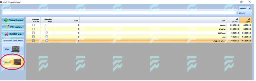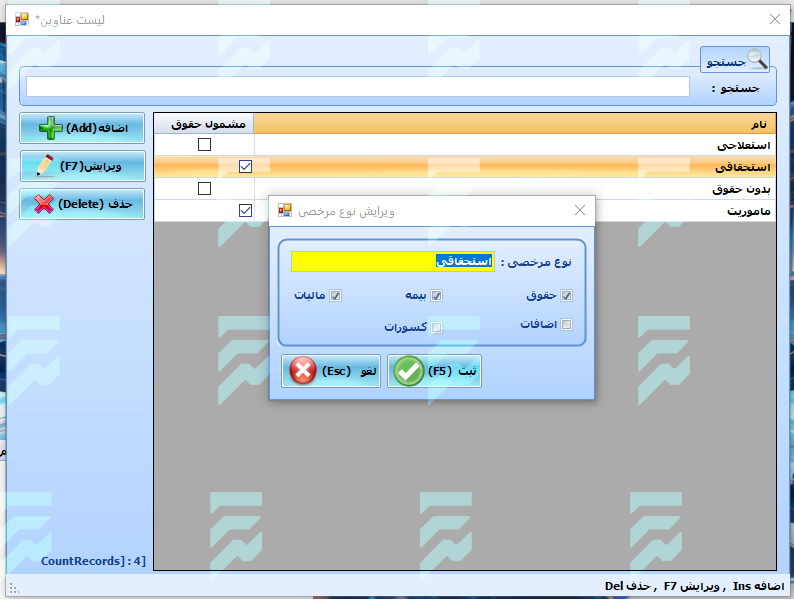در این بخش، مزایا و کسورات جهت محاسبه فیش حقوقی تعریف میشوند.