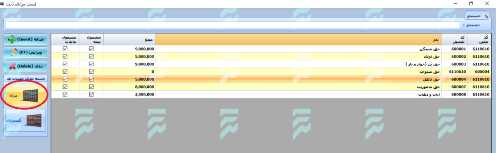 با دابلکلیک روی مزایا، آن را به فیش حقوقی اضافه نمایید.