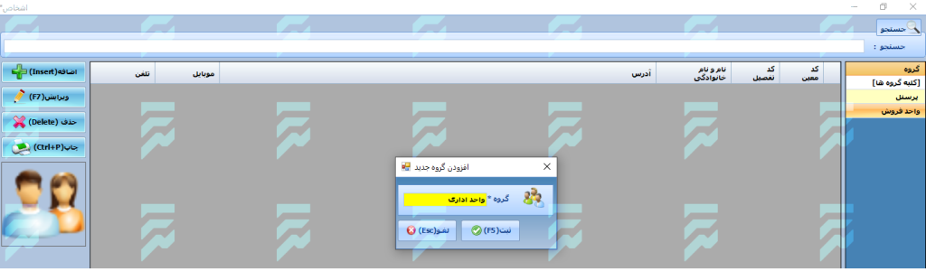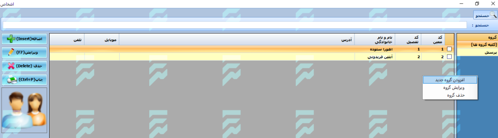 (گروههای پرسنلی قبلاً در بخش «پرسنل» معرفی شدهاند؛ در صورت نیاز به راهنمایی، به راهنمای بخش پرسنل مراجعه نمایید.)