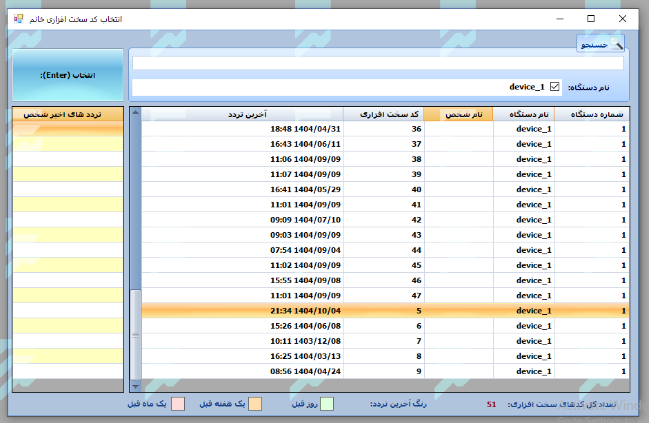 پس از دریافت اطلاعات، لیست ترددهای ثبتشده نمایش داده میشود.