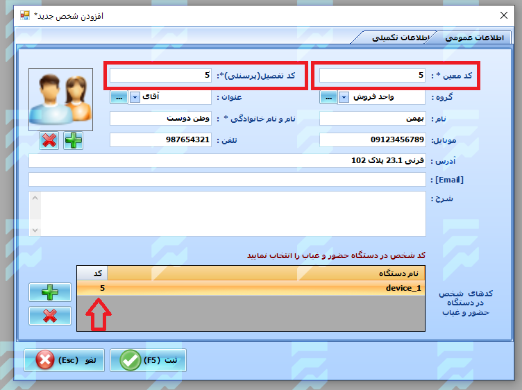 • در صورتی که تنها یک دستگاه در نرمافزار تعریف شده باشد، روی دکمه «ذخیره» کلیک کنید.
