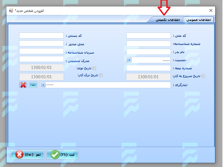 در این سربرگ، اطلاعات بانکی و وضعیت استخدامی فرد ثبت میشود.