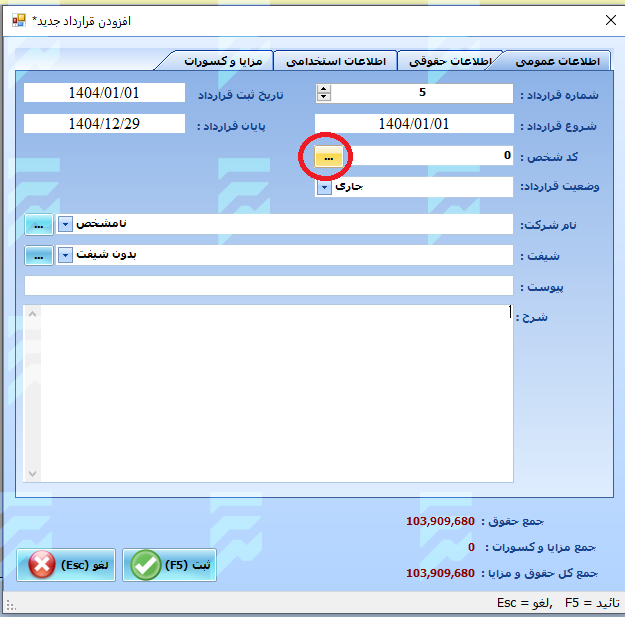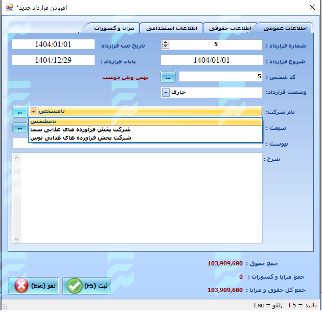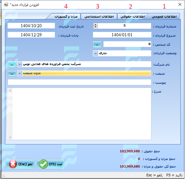 )تمامی آیتمهای نمایشدادهشده در این بخش، در قسمتهای پرسنل، شرکت و ایجاد قرارداد توضیح داده شدهاند).
