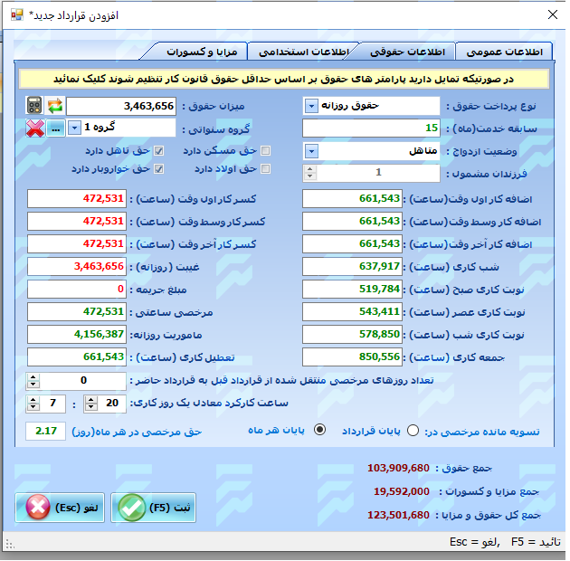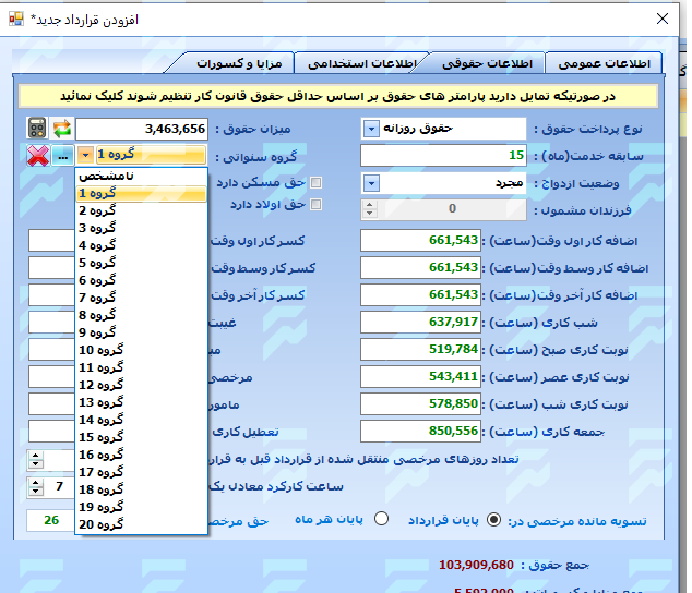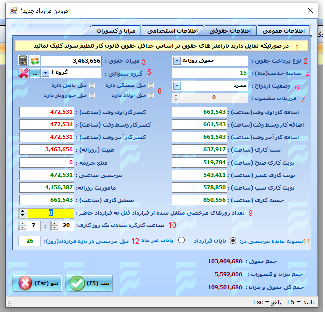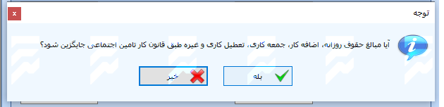 با فعالسازی گزینه «اعمال حقوق روزانه بر مبنای قانون کار»، حقوق فرد بر اساس قانون کار محاسبه خواهد شد.