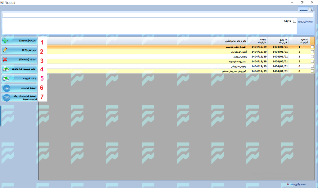 با کلیک روی این دکمه، قرارداد جدید ایجاد میشود. مراحل ایجاد قرارداد در بخش قبل بهطور کامل توضیح داده شده است.