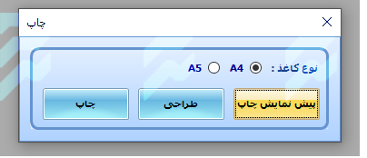 پس از کلیک روی دکمه «چاپ لیست قراردادها»، یک کادر باز میشود که در آن میتوانید سایز کاغذ را انتخاب نمایید.