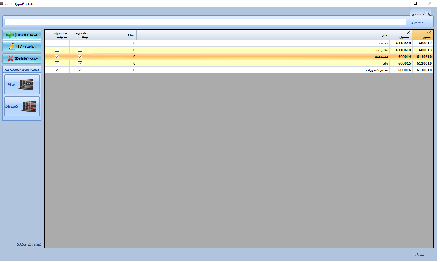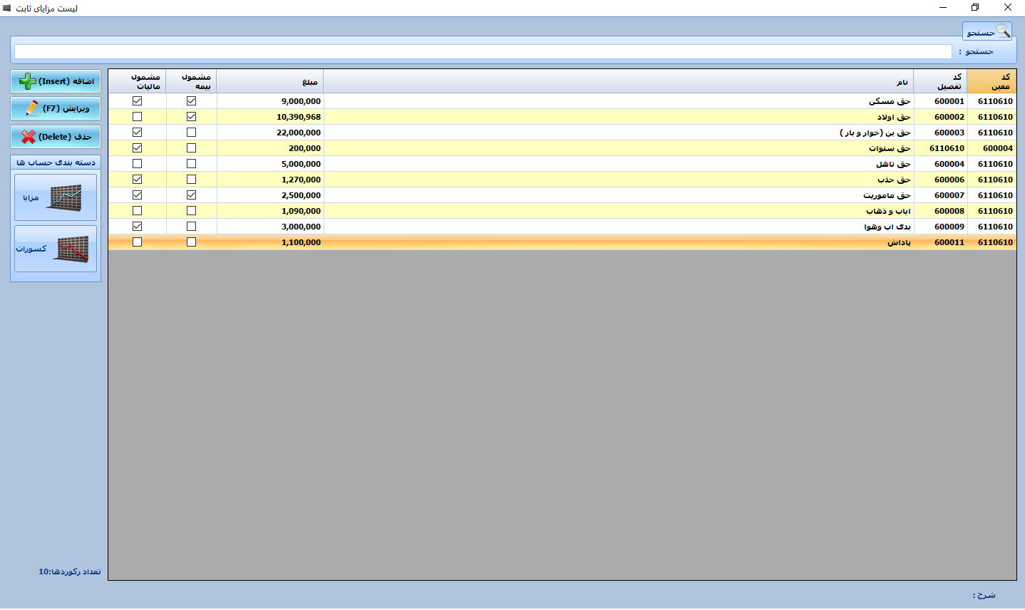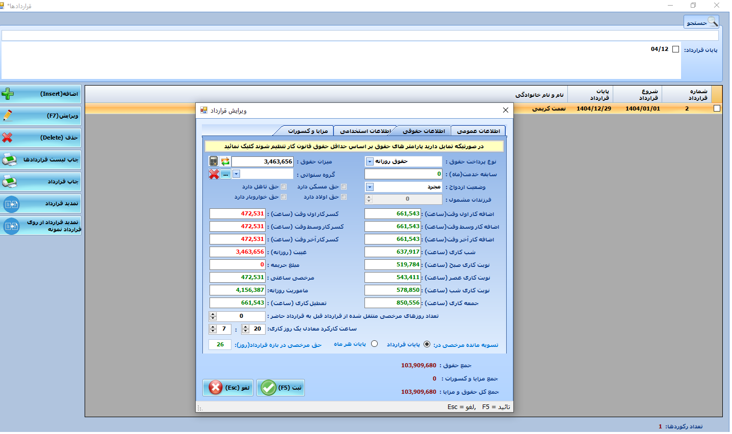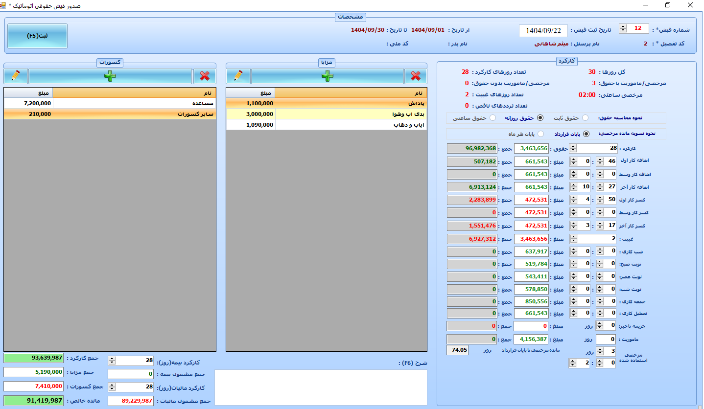 | ثبت انواع مزایا و کسورات در قراردادکاری | دارد |