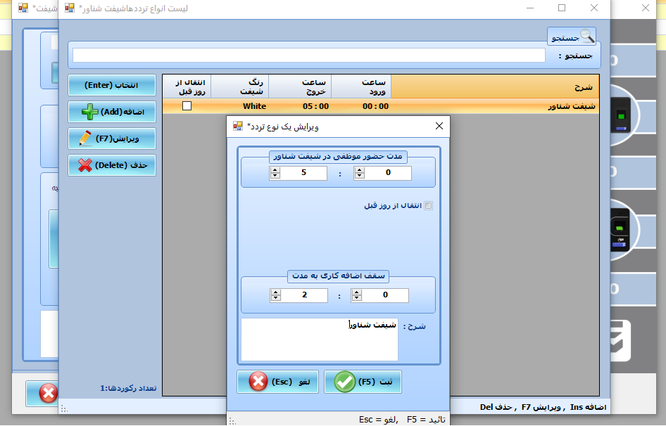 | تعداد شیفت کاری قابل تعریف | 5 |