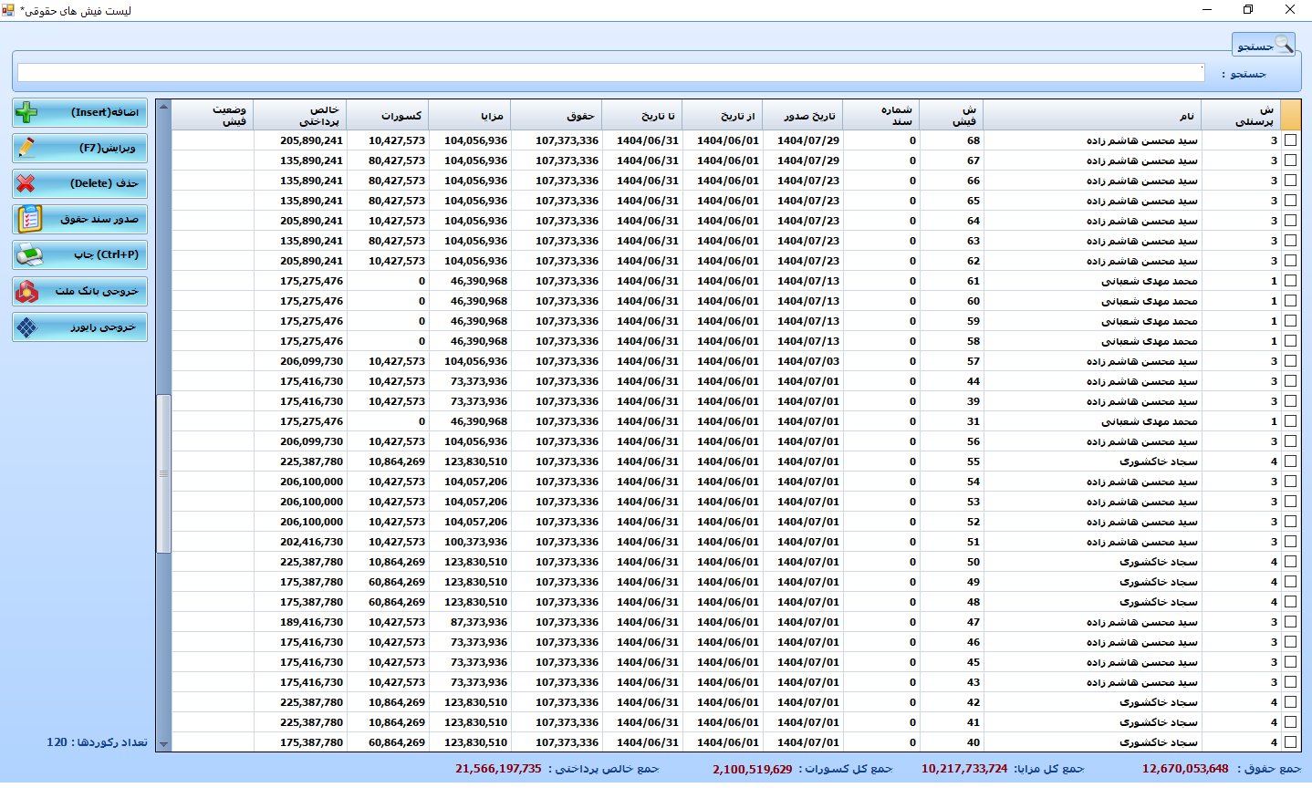 | صدور فیش حقوقی بر اساس اطلاعات حقوق پرسنل | دارد |